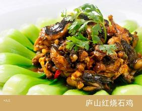 廬山石雞是一種生長在陰澗巖壁洞穴中的麻皮青蛙。又名赤蛙、棘腦蛙,體呈赭色,前肢小,后肢強壯。因其肉質鮮嫩,肥美如雞而得名。