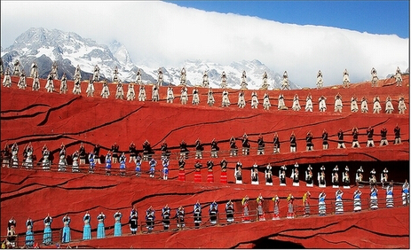 《印象麗江》這部史詩劇目是由國際知名導(dǎo)演張藝謀、王潮歌、樊躍這幾位導(dǎo)演和他們的團隊通過一年多的努力精心制作,在零六年七月二十三日進行了首次演出。公演不要緊,一次演出把在場的所有觀眾都鎮(zhèn)住了,而且在場的許多導(dǎo)游都說,團內(nèi)的許多游客朋友們看到這一幕都哭了。《印象麗江》采用了一種特殊的劇目演出方式,屬于原生態(tài)大型實景演出,他們通過真實的環(huán)境作為舞臺,演出場地采用了海拔3100米的玉龍雪山景區(qū),通過玉龍雪山的天然背景,將麗江人民的日常生活,起居及民俗風(fēng)情表現(xiàn)出來。不得不說一點,每次演出耗費的人力物力是相當多的,真得算是真實演出了。熬用一百匹馬、四百多名群眾演員,來完成一部劇目,對于國內(nèi)來說也算是稱道的了。