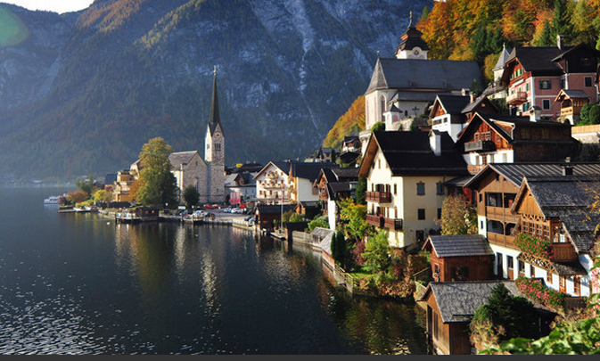 哈爾施塔特:整個小鎮沿湖而建,人口也很少,這是一個美得令人心醉的湖邊小鎮。湛藍的湖水、明凈的天空、多彩的歐式木樓、尖頂的教堂,配上青山的倒影、雪白的天鵝、斑斕的秋色,組成了一幅絕妙的歐洲山水畫卷。