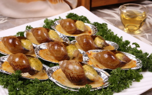法式焗蝸牛:蝸牛和干貝、鮑魚、魚翅被稱為法國四大名菜。法式蝸牛又是法國人的最愛,據統計,法國一年要消耗三億多只蝸牛,法國人對蝸牛的喜愛從這數量上就可見一斑。而法國人做蝸牛菜又有不同的方法,如洋蔥炒蝸牛、燴燒蝸牛、宮爆蝸牛、滑蛋蝸牛等等,最受多數法國人喜歡的還是這道法式焗蝸牛。