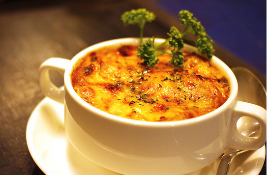 洋蔥湯:從羅馬時代開始風行,可能最能代表法國湯的就是洋蔥湯了,一般作為前菜呈現。湯的表面有一層奶酪形成的殼,內部除了切碎后煨過的洋蔥還經常有煮軟的面包。