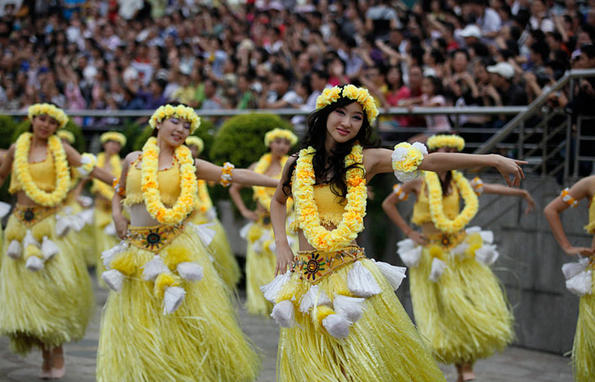 是最讓觀光者念念不忘的夏威夷名片,草裙舞又叫“呼拉舞”,是一種注重手腳和腰部動作的舞曲。跳舞的女郎,掛著花環(huán),穿著金色的草裙,配合音樂旋律和節(jié)奏、表現出優(yōu)美的姿態(tài)。贊頌“火山女神”的舞蹈,也是游客所