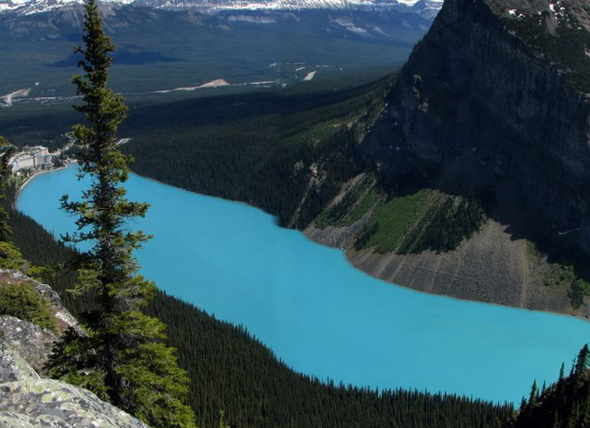 2.露易斯湖 :露易絲湖(Lake Louise)是班夫國家公園(Banff National Park)中最著名的景點,得名于英國露易絲公主的美麗傳說。公主不顧自己的皇室血統,與平民羅恩相愛,于是這對年輕情侶被維多利亞女王貶黜到遙遠寒冷的加拿大,露易絲湖就是對這段凄美愛情的紀念。如今露易絲湖就仿佛這位美麗公主發簪上的耀眼明珠,鑲嵌在純凈的翠山、藍天和白云之中。一年四季湖的景色都不同,夏天的時候湖水是明亮的碧綠色,仿佛遺落在落基山脈中的翡翠,而冬天湖面結冰,與維多利亞山上的白雪渾然一體,宛如冰雪國度。