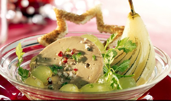 1.鵝肝:香醇細(xì)滑的肥鵝肝,是法國人圣誕、新年時(shí)候的節(jié)日大菜,也是受保護(hù)的文化遺產(chǎn)。很多人家里有自己腌鵝肝的習(xí)慣,商店里也有罐裝的鵝肝醬。因?yàn)閮r(jià)格不便宜,所以也有鴨肝(Foie gras de canards)做的替代品或者混合品,鵝肝所占比例越高則價(jià)格越貴。鵝肝通常是前菜,用來抹面包,配少許果醬。也有煎鵝肝的吃法,可以搭朝鮮薊、松露或蘋果、梨等配菜。