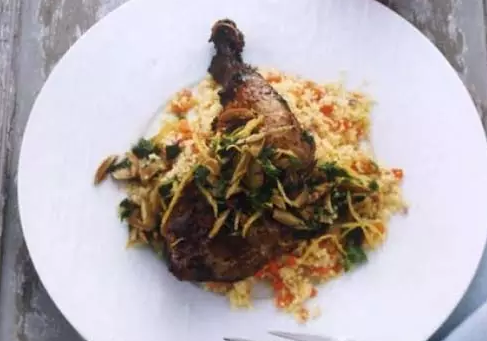 15.粗麥橄欖香酥雞腿:“Confit”是一種用鴨油來烹飪鴨腿的方法。不過這道菜使用的是雞腿而不是鴨腿,而且使用橄欖油來代替鴨油。做好雞腿后,在盤子里加入適量蒸粗麥,以獲得一種摩洛哥風(fēng)情。