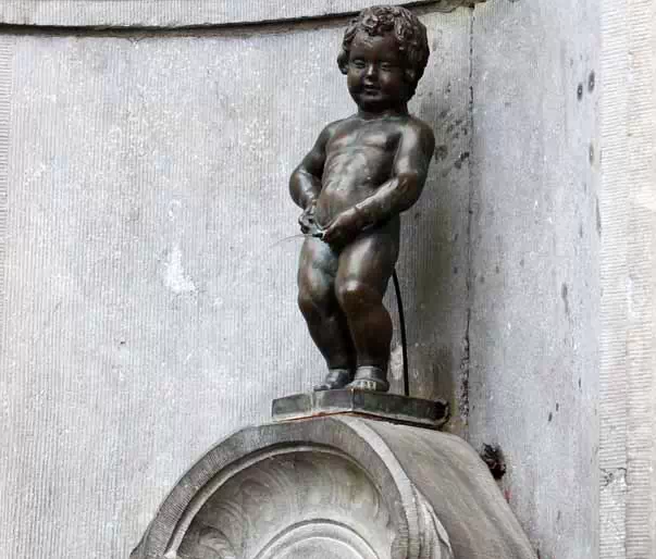 撒尿小童:從大廣場向北走,穿過一段碎石小路,在一條名叫狗街的轉(zhuǎn)彎處,豎立著一尊50厘米高的撒尿小童銅像。這個微卷頭發(fā)的“布魯塞爾第一公民”小于連翹著小鼻子,挺著小肚,屈著肥嘟嘟的腿,光著屁股,右手叉腰,調(diào)皮地微笑,從早到晚無拘無束地在人們面前撒尿。