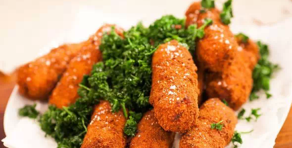 炸蝦丸:是炸丸子的意思,crevettes 是蝦的意思,大部分做的是長(zhǎng)條狀的,有時(shí)也會(huì)是丸子狀。比利時(shí)最普遍的做法是選用當(dāng)?shù)氐奶禺a(chǎn)灰蝦做內(nèi)餡。味道還是不錯(cuò)的,但熱量有點(diǎn)高,不適合愛美的減肥人士。