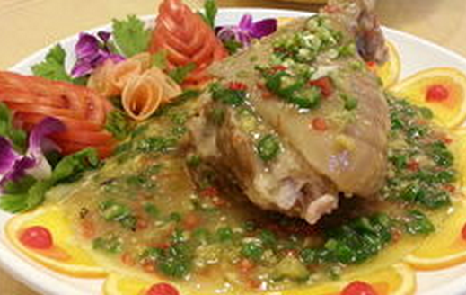 雪維菜燉膳魚: 雪維菜又名 車窩草又稱雪維菜、峨?yún)ⅰ⑼ピ杭?xì)葉香芹,為傘形花科峨?yún)僖荒晟荼局参铮a(chǎn)歐洲南部。嫩莖葉可食,葉中含豐富的維生素、礦物質(zhì)及揮發(fā)性芳香油,味道類似茴香,能促進(jìn)食欲,應(yīng)用歷史久遠(yuǎn),可追溯到古羅馬時(shí)代,和膳魚燉在一起,清香撲鼻,美味無(wú)比。