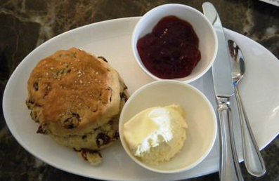 奶油茶:奶油茶是德文郡和康沃爾郡的傳統食品,在英國的各類茶館和咖啡店都有售。奶油茶通常由紅茶、司康(烤餅)、草莓醬以及凝固的奶油組成。如果您在不同的地方 品嘗奶油茶,會注意到細節上略有不同。比如,在德文郡,習慣把草莓醬抹在熱的司康上,然后再抹上奶油。而在康沃爾郡,一般則是先抹奶油。盡管傳統的奶油茶 是作為下午茶侍奉,但是只要你樂意,隨時都可以去享用。