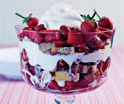 ?英式查佛:英式查佛(Trifle),象布丁一樣,是英國的傳統甜品,通常由水果,蛋糕或是餅干,custard,奶油一層一層做成,層層疊疊就是Trifle的最大特點,此外,用甜酒比如雪利酒淋泡過的蛋糕或是手指餅,也是Trifle的獨特之處。水果的清甜加上美酒的香醇,算是非常獨特的甜品。除了那些英國人離不開的烤豆、魚和炸薯條外,英式香腸外,這個很英式的Trifle算是英國人最離不開的甜點了。