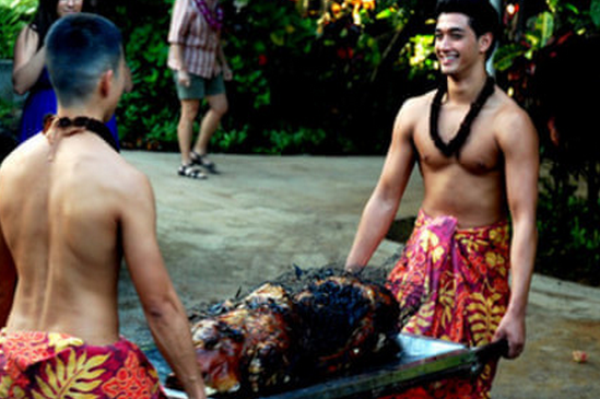 烤豬宴:烤豬宴做法是先在地上挖一個大坑,再在周圍圍上一圈石頭,先用火把石頭烤熱,再把一些烤熱的石頭放進(jìn)豬的肚子里,用大的芭蕉葉把整只豬包好,放在坑中,蓋上土,悶上5、6個小時就好了。這樣烤制的豬肉又香又嫩,肥而不膩,還可以邊吃邊觀賞歌舞表演。