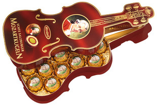莫扎特巧克力產于薩爾茨堡,是一種巧克力加杏仁糖制成的巧克力球,在專賣店和各種商店均有售,有些大的超級市場也可以買到。