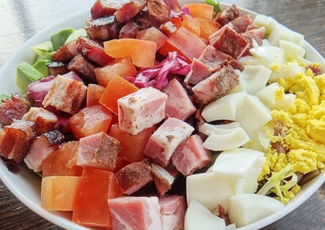 科布色拉:據(jù)北京旅行社所知,美國色拉,是一定要有足夠的肉類種類和重量,而且還要有牛油果和奶酪。一盤很好的色拉的原料主要有熏肉、炸雞肉、牛油果、雞蛋粒、藍(lán)奶酪等各種覺得能放進(jìn)去的都可以加入。