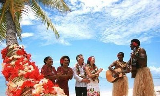 在斐濟(jì),你會(huì)發(fā)現(xiàn)到處都是帶著美麗的鮮花的游人們,男女老少都不列外。據(jù)北京旅行社所知,把花戴在左邊是表示未婚,而把花戴在兩邊則表示已結(jié)婚。令人感到吃驚的是,男人除了戴花外,居然也穿裙子。裙子在這里被稱做“SOLO”,不僅男人平時(shí)會(huì)穿著SOLO,甚至指揮交通的警察們也是穿著SOLO執(zhí)行公務(wù)的,真是街頭一景。 每年的8月中旬都舉行為期一周的紅花節(jié),紅花即扶桑花,或稱木槿花,是斐濟(jì)的國花。節(jié)日期間島民舉行化妝游行來選舉紅花皇后。戴花、穿裙子等等奇怪的另類行為,已經(jīng)讓你充分感受到這個(gè)島國的風(fēng)情了,而飄揚(yáng)在四周的人們高亢的歌聲則完全帶出了島國悠閑逍遙的情調(diào)。
