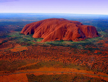 紅色巨巖是澳大利亞著名的旅游勝地,是紅色的巨大巖石,遠遠望去,火紅的一篇,湛藍的天空下,猶如火紅巨大的花朵,點綴著寧靜的世界。