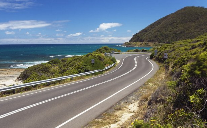藍色的天空潔白的云朵,綠色的海洋,青色的山峰,寬闊的道路,碧海藍天、青山綠水一切都已存在于一起,多么和諧美好的大自然景觀。