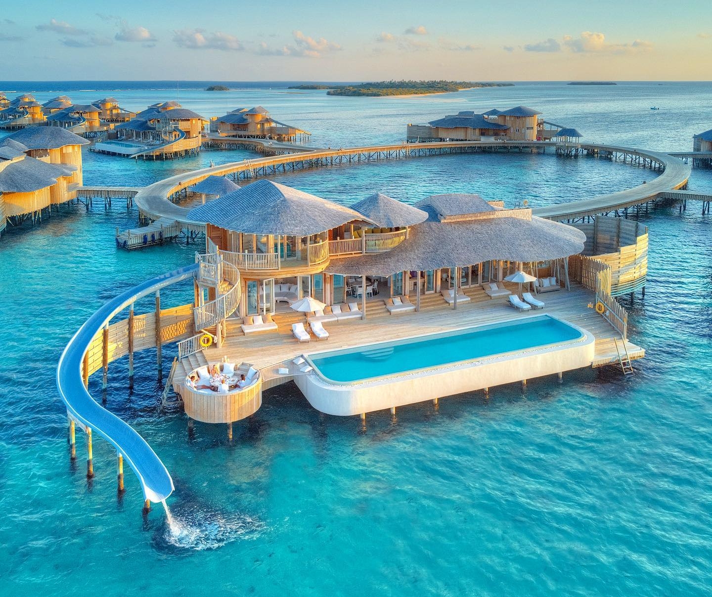 這家島主可是鼎鼎大名,在馬爾代夫擁有多個知名島嶼。并且島主非常壕!買水上飛機、直接英國買了一個賽馬團隊移植到島上。修了個酷漂水樂園,這是七妹目前了解到蕞大的水上樂園!目前又在計劃島上修一個F1賽道公園!反正一個字“買”“買”“買”!這個島特色之一就是非常出片!并且親民到人均1個W就可以入住滑梯水屋~