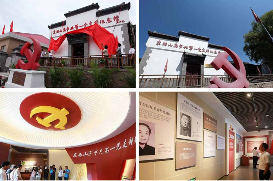 在田莊村文化中心旁建有京西山區中共第一黨支部紀念館展館,建筑面積144平方米。場館建設主要突出黨史教育功能,遵循與紅色旅游景區和整體旅游產業規劃相銜接、與周圍環境相協調的原則進行建設。紀念館陳展主要借鑒國內著名紅色旅游景區場館陳展經驗,采取傳統與現代陳展手段相結合的方式進行設計,注重挖掘革命史、黨建黨史、戰斗歷程和歷史遺跡。館內設1個展廳,陳展方式以壁畫、雕像、圖片展板等為主。