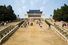 中山陵是中國近代偉大的政治家孫中山先生的陵墓。它坐北朝南,中山陵自1926年春動工,至1929年夏建成。面積共8萬余平方米。主要建筑有:牌坊、墓道、陵門、碑亭、祭堂和墓室等。從空中往下看,中山陵像一座平臥在綠絨毯上的“自由鐘”。山下中山先生銅像是鐘的尖頂,半月形廣場是鐘頂圓弧,而陵墓頂端墓室的穹隆頂,就像一顆溜圓的鐘擺錘。祭堂中有中山先生大理石坐像。像座東西四周有反映中山先生革命事跡的浮雕。祭堂東西護壁大理石刻著中山先生手書的遺著《建國大綱》。堂后有墓門二重,上有中山先手書“浩氣長存”橫額。二重門為獨扇銅制,門上鐫有“孫中山先生之墓”石刻。進門為圓形墓室,直徑18米,高11米。中央是長形墓穴,上面是中山先生漢白玉臥像,下面安葬著孫中山先生的遺體。墓穴深5米,外用鋼筋混凝土密封。中山陵的建筑風格中西合璧,鐘山的雄偉形勢與各個碑坊、門、碑亭、祭堂和墓室,通過大片綠地和寬廣的通天臺階,連成一個大的整體,顯得十分莊嚴雄偉,既有深刻的含意,又具紀念的功能,更有宏偉的氣勢,設計非常成功,所以被譽為“中國近代建筑史上的第一陵”。 不到中山陵就不能算到過南京,它已成為南京旅游的標志性景點。漫步中山陵確實需要好體力,一步一步地爬上392級階梯,最后的階梯越來越高,代表著革命到后面越來越艱難。而巍巍中山陵,從修建、竣工到聳立至今,它的歷程也充滿了艱辛。在周圍肅穆的環境中,看具有民國特色的建筑,如果你是個歷史迷,一定會非常感興趣。
