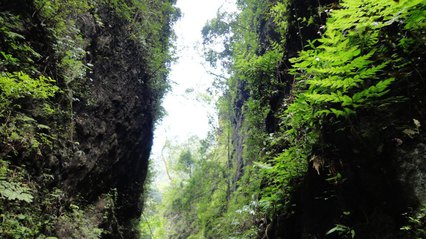 沿著溪邊的棧道從清音閣步行約20分鐘,或由生態猴區沿棧道步行約15分鐘可到。
