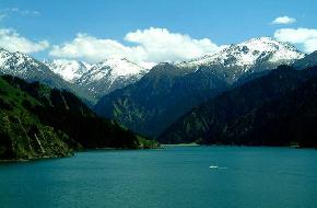 巍巍天山,口銜天池,東西橫亙2500余公里,南北寬度250至350公里。西起中哈邊境,東至星星峽,在我國境內綿延1700公里。整個天山山系由3列山脈組成,由北往南分別稱為北天山、中天山和南天山。 天池即位于北天山中段的博格多山北坡。 博格多山向西,山勢逐漸高峻。20多座海拔5000米以上的山峰將廣袤、深遠的新疆奇麗、險峭的另一面打開。而回首東望,山勢逐漸低矮。突然,博格達峰以海拔5445米的挺拔身姿陡起于群山叢中。與另外兩座海拔分別為5287米和5213米的山峰構成了著名的“雪海三峰”,成為新疆的象征。天池也是因為陡然升起的高度而顯得高峻異常。其實它的海拔為1943米,嚴格來說還不到“半山腰”。 茂密的森林、廣闊的草原、眾多的山系――天山作為新疆“生命的搖籃”,占新疆全區面積三分之一強(57萬多平方公里)。其山體由山地、山間盆地和山前平原三部分組成。