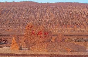 大名鼎鼎火焰山 ;“山不在高,有仙則名”,火焰山就是這樣一座山。火焰山位于吐魯番盆地北緣。古書稱赤石山,維吾爾語稱克孜勒塔格,意即紅山。 火焰山脈呈東西走向。東起鄯善縣蘭干流沙河,西止吐魯番桃兒溝,長100公里,最寬處達10公里。火焰山重山禿嶺,寸草不生。每當盛夏,紅日當空,地氣蒸騰,焰云燎繞,形如飛騰的火龍,十分壯觀。