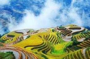 龍勝縣龍勝梯田群規(guī)模宏大,全部的梯田分布在海拔300-1100米之間,最大坡度達(dá)50度,一層層從山腳盤繞到山頂,層層疊疊,高低錯(cuò)落。其線條行云流水,其規(guī)模磅礴壯觀。是桂林旅游的一個(gè)重要組成部分。