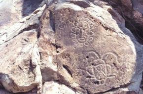 ③大西峰溝巖畫,西峰溝又稱“西伏溝”或“西佛溝”,位于平羅縣和賀蘭縣交界處,距平羅縣縣城30余公里。大西峰的巖畫內(nèi)容有人面像,人物和動物,巖畫共有8個(gè)點(diǎn)。