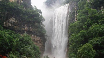 三峽大瀑布屬于曉峰旅游區,原名白果樹瀑布,位于宜昌市夷陵區黃花鄉太山廟村,因峽谷叢林風光和天然瀑布群而遠近聞名。三峽大瀑布溪流全長5公里,沿途分布著30多道瀑布,溪水常年不斷。逆水而上,虎口瀑、一線瀑、珍珠瀑、丫瀑、連環瀑、五扇瀑等形態各異,其中最壯觀的是高102米、寬80米的三峽大瀑布,被譽為“中國十大名瀑”。而在峽谷盡頭的絕壁上,還有一尊高70多米的天然石佛——水袈裟大佛,一股山泉從大佛的額頭處流下,直沖谷底,為大佛披上了一襲圣潔的“水袈裟”,讓景區多了一層莊嚴的宗教氣息。