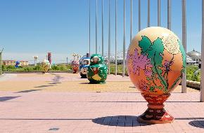 “套娃”是俄羅斯的一種民間木制玩具。它一般由七八個木娃,由大到小漸次套合在最大的一個體內組成,可分可合,因而稱為“套娃”。滿洲里俄羅斯套娃廣場是全國唯一的以俄羅斯傳統工藝品——套娃為主題的旅游休閑娛樂廣場,集中體現了滿洲里中俄蒙三國交界地域特色和中俄蒙三國風情交融的特點。廣場規劃面積54萬平方米,主題廣場面積6萬平方米,主體建筑是一個高30米的大套娃,建筑面積3200平方米,是目前世界上最大的套娃。主體套娃內部為俄式餐廳和演藝大廳。套娃外部彩繪由代表著中俄蒙三國的美麗女孩組成,主體套娃周圍有8個功能性套娃、200個代表全世界不同國家和地區的小套娃和30個色彩繽紛的俄羅斯復活節彩蛋。在廣場音樂噴泉的周圍還有代表中國傳統文化的十二生肖和西方占星文化的十二星座。夜色中,在近千盞彩燈的映射下,廣場上流光溢彩,仿佛是一個五彩繽紛的童話世界。俄羅斯套娃廣場將中俄蒙三國風情和東西方文化完美的融合在一起,是集旅游觀光和趣味性、娛樂性為一體的滿洲里標志性旅游景區。