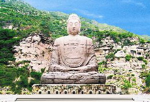 蒙山大佛簡介: 蒙山在太原西南約20公里處,晉祠以北的寺底村,主峰高1325米,蒙山曉月為舊太原八景之一。北齊高洋帝于天保二年( 551)將東魏大莊嚴寺擴建為開化寺,開鑿了高 200尺的摩崖大佛,稱為西山大佛,比目前全國最大的樂山大佛略高。隋文帝時新建了庇蓋大佛的殿閣,唐高宗和武則天曾來此禮佛,賜宮內袈裟。由于寺毀閣傾,大佛淹沒于亂石瓦礫之中,僅見胸頸部分,胸寬25米,高17.5米,頸部直徑寬五米。目前做為旅游資源正在規劃開發之中。