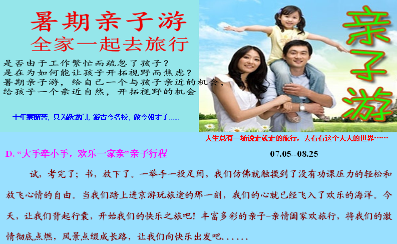 早餐后參觀自費乘皇家游船(門票自理100元)游皇家御河,纜皇家園林,全方位的感覺帝后風采。進入世界上最大的,宛如人間仙境的皇家園林—【頤和園】(約120分鐘)。湖光山色,長廊點綴,人在畫中,雅致迷離......頤和園是中國四大名園之一,利用昆明湖,萬壽山為基址,以杭州西湖風景為藍本,汲取江南園林的某些設計手法和意境而建成的一座大型天然山水園,也是保存得最完整的一座皇 家行宮御苑,被譽為皇家園林博物館。走進中國高等院?!厩迦A/北京大學】(政策性關閉觀外景)(1.5小時),踏進夢中的象牙塔,領略年名校風彩,游未名湖畔,博雅塔、斯諾基、清代石舫更是值得一看...…親身感悟世界名牌大學對我們的心靈召喚, 讓心中的夢想起航.......參觀大型綜合性書城,選購自己喜愛的圖書,在知識的海洋里游弋。中餐于北大/清華餐廳食堂用餐(學生營養套餐), 可以離距離的與我們心中的榜樣,大姐姐大哥哥中一起交流學習經驗,探討學習方法......(特別贈送每人一枚北大/清華?;?,孩子增送高校T恤一件)。推薦游太平洋海底世界(120元自理),數以千計的海洋生物,精彩不斷的企鵝表演,走在亞洲最長的海底隧道,讓您仿佛置身于海底寶藏中。下午參觀游覽【動物園】(含熊貓館),它是明清兩代皇帝游玩的萬牲園,是中國最大,開放時間最早,飼養展出動物最多的動物園,館內設有獅虎山,獼猴館,猩猩館,海獸館,兩棲爬行動物館等場館。其內的熊貓館更是值得一看,胖胖的,肥肥的,兩個黑黑的大眼圈可愛極了,讓我們和大熊貓來次親密的約會吧…… 晚餐推薦:老北京炸醬面