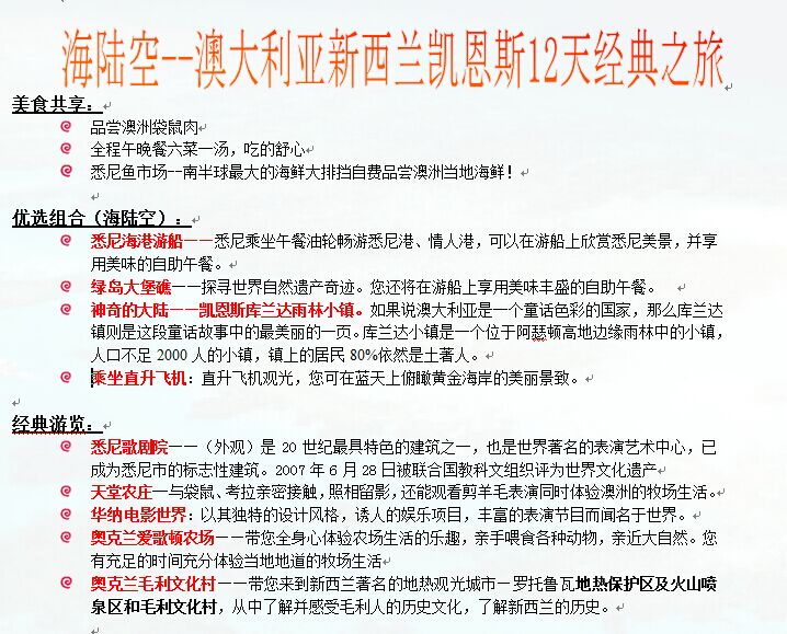 6. 導游:全程委派中文全陪及境外各地優秀導游服務;16人以下的團隊通常采用司機兼導游的服務形式(凱恩斯段全程司兼導);