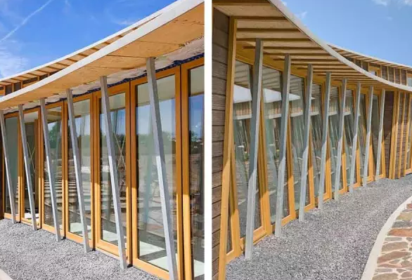 據(jù)北京旅行社了解,這棟小木屋位于比利時東部一座村莊中,地處斜坡上,受到附近樹林庇護,坐擁壯麗鄉(xiāng)村景色。建筑師希望建立一座環(huán)保,具有低視覺沖擊力,能夠完美融合到當?shù)丨h(huán)境中的建筑。
