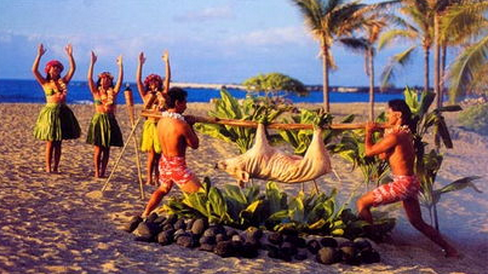 盧奧是夏威夷特有的聚餐大會(huì),一般在一些重要的時(shí)刻舉行,比如婚禮、慶典或是生日等,自古就有。而這個(gè)盛宴上最不缺 少的就是用夏威夷傳統(tǒng)方式烹飪的烤豬肉以及各色來自島上的其他菜肴。其實(shí),對(duì)于盧奧來說,吃只是一個(gè)方面,極具夏威夷特 色的音樂和舞蹈才是主角。盛宴開始前,一些當(dāng)?shù)厝嗽谏碁┥涎菔靖鞣N夏威夷及南太平洋的傳統(tǒng)手工藝,游客們興致勃勃地學(xué)習(xí) 草裙舞,遠(yuǎn)處,海面波光閃耀,帆影唱晚。