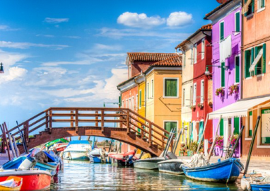 布拉諾(Burano)是意大利威尼斯所轄下的一個小島,島上居民都是漁民的后代,當地的手工蕾絲和抽紗制品與穆拉諾島(Murano)的彩繪玻璃一樣,都是威尼斯的特色手工藝品。相傳小島的地方政府規定當地居民每年都要刷一次房子的外墻,于是居民們發揮想象力,把他們小巧玲瓏的房子刷得五顏六色,色彩斑斕。從此,這里就以彩色島而聞名,吸引著無數外來者來此游玩。