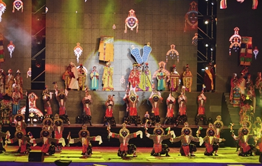 上圖為節(jié)慶活動(dòng)開幕式上,文藝工作者表演大型歌舞《珠峰贊歌》。