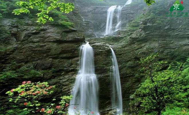 京都第一瀑位于北京密云縣石城鄉柳棵峪內,距北京103公里,黑龍潭北3公里,是由云蒙山泉水匯集而成,落差62.5米,坡度85度。是京郊流水量最大的瀑布。走進峽谷,未見瀑而先聞其聲。水從懸崖直瀉而下,云霧彌漫。遠眺,如玉柱擎天,雄偉壯觀。近看,銀花四濺,猶如白霧向空中噴涌。陽光照射,呈現出七彩虹,旖旎如畫,形成斑駁陸離的顏色。瀑下潭大而奇,深不可測。文人墨客詠詩贊嘆:“云蒙瀑鄉繡色錦,飛流直下雙白尺,京華瀑魁眾嘆服,嫦娥觀止不歸宮。”