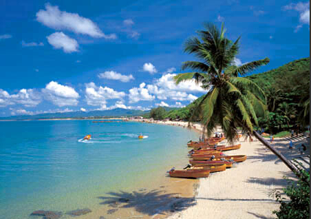 搭上以情人島著稱的蜈支洲島的游船,心里便充滿了喜悅,我把臉伸出船弦外,快活地迎著濺起的浪花。與我同行的那家伙情意綿綿地說:“我這可是第一次出海耶!”我感動著說:“謝謝你把你的第一次給了我。”